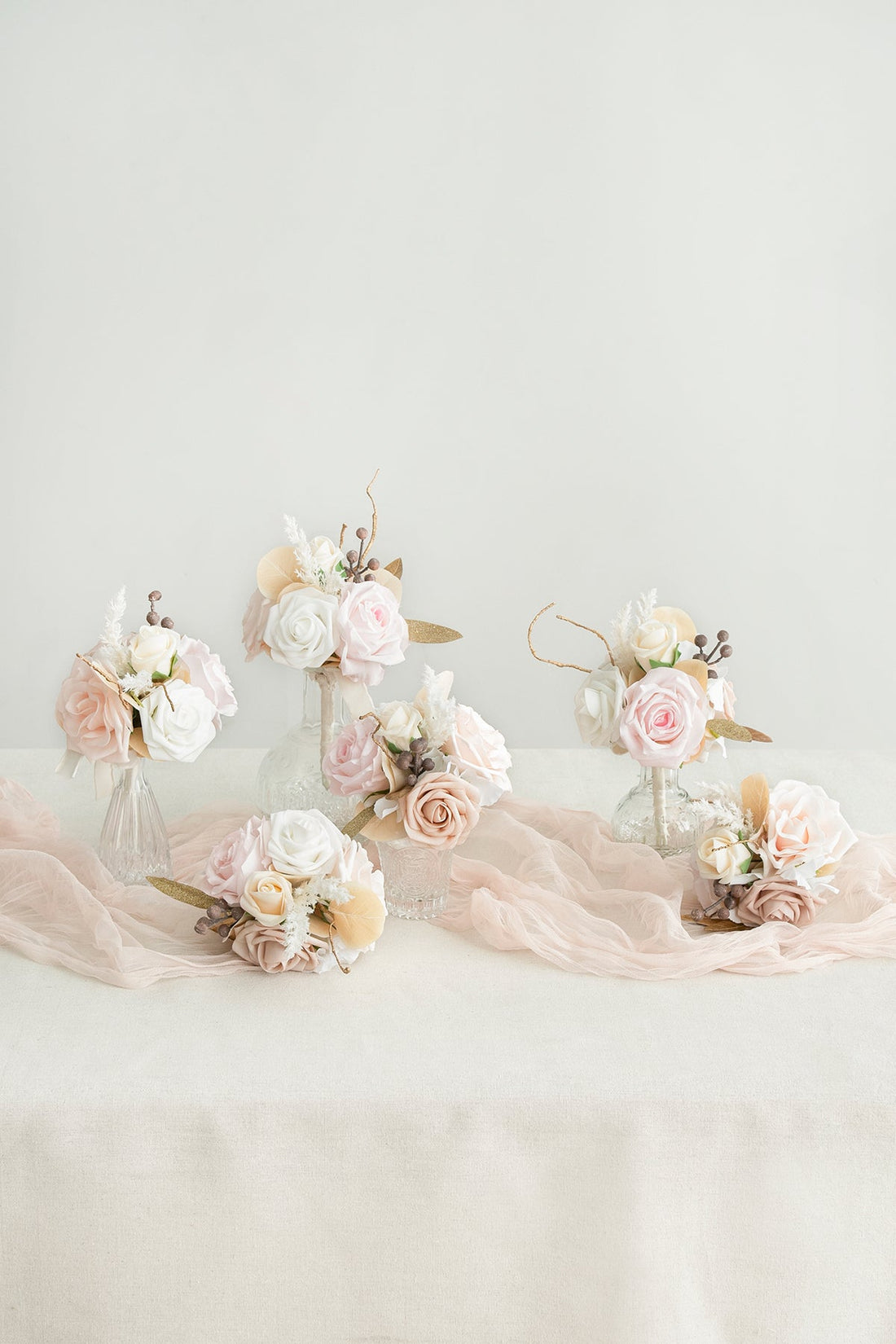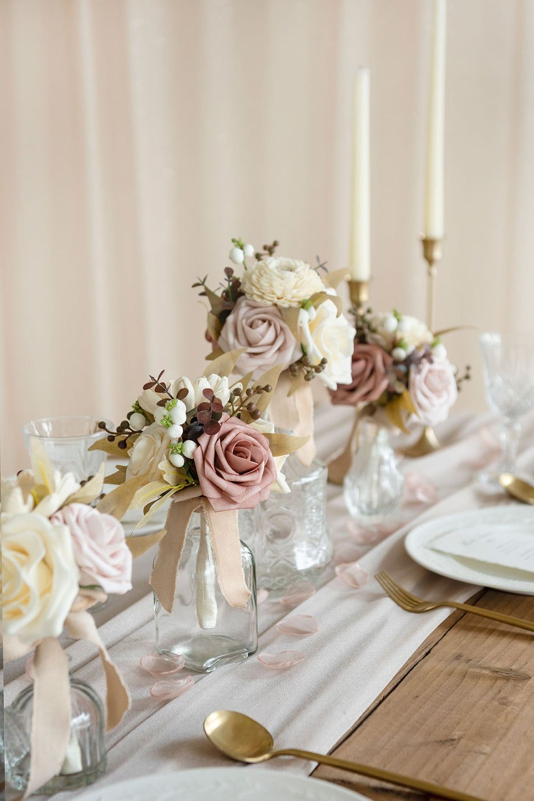Mini Premade Flower Centerpieces Set in Dusty Rose & Navy