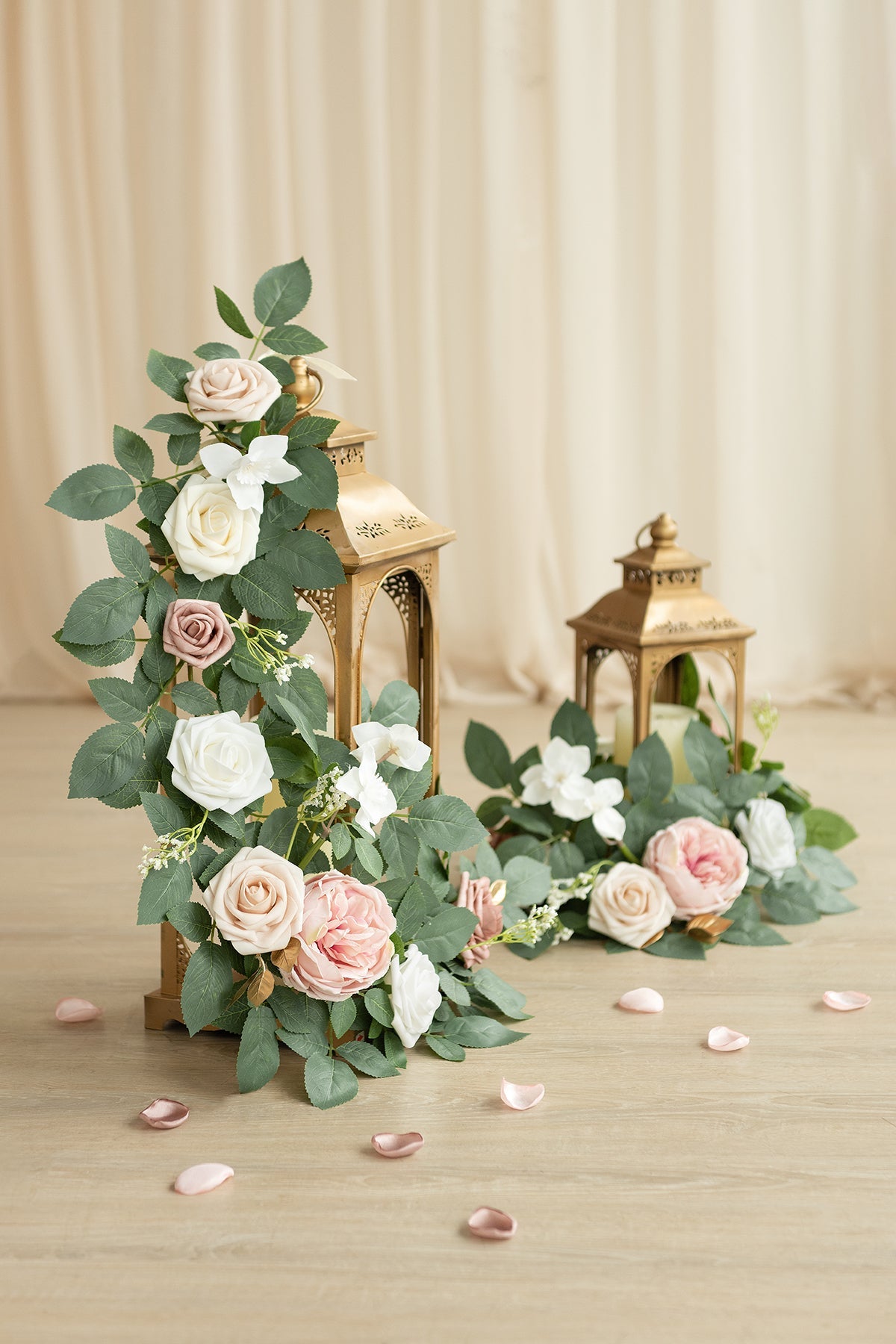 Set of 2 pre-made flower arrangements for around lantern centerpieces.