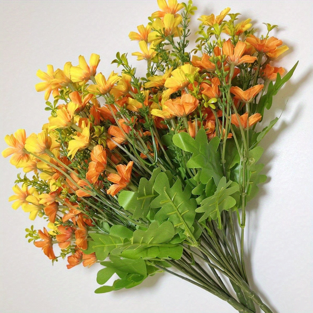 3.Made of plastic and faux silk flower material, it is wear-resistant and durable. 4.It is suitable for wedding parties, home decorations, bookstore, cafe store, cloth shop and all kinds of occasion's decoration. Specifications: Material: Plastic,silk Size: Length 37cm Package includes: 5 Bouquet Daisies Artificial Flowers