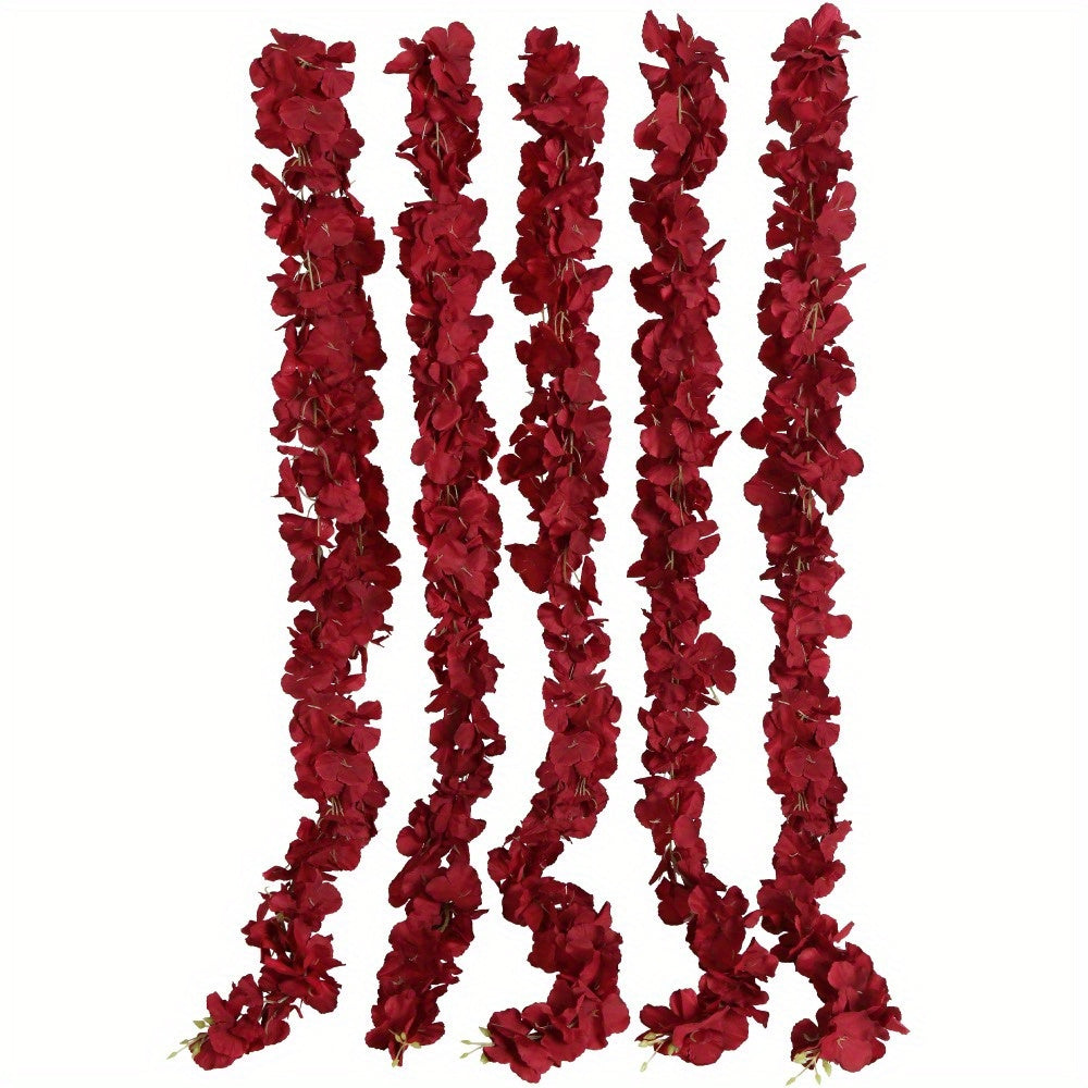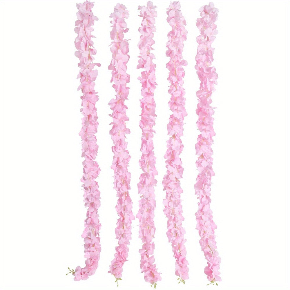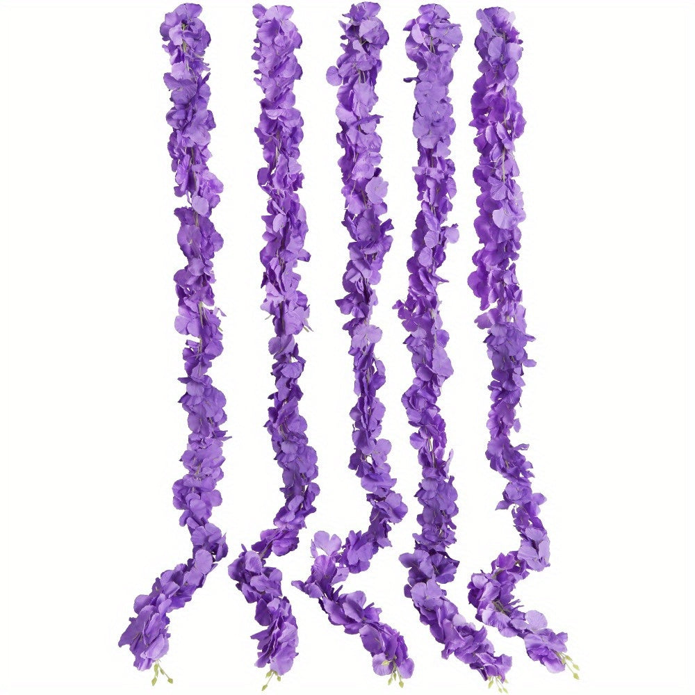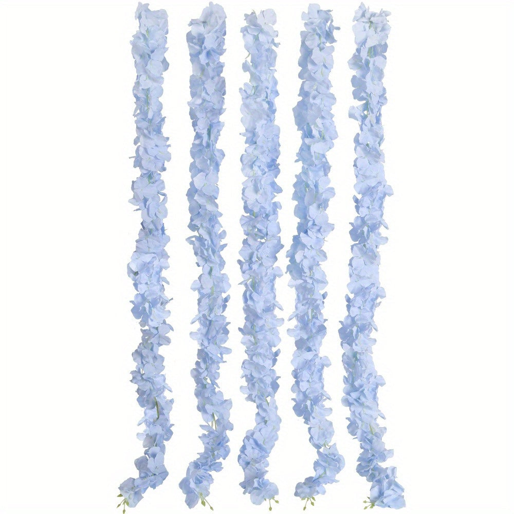 5 Pcs Long Wisteria Artificial Flowers Garland Fake Hanging Hydrangea Silk Flowers Vine Faux Wisteria Vine for Wedding Outdoor Party Garden Centerpieces Table Decorations