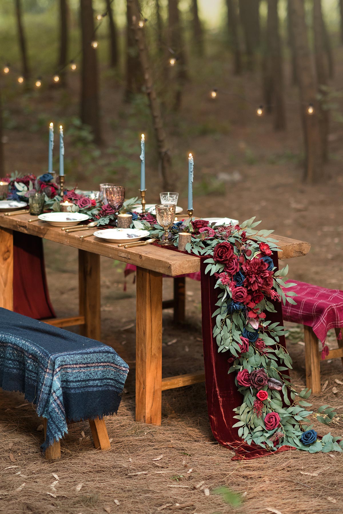 - DIY Guide: Refer to this Eucalyptus Flower Garland, DIY your own flower garland for a table runner, you may prepare 2 basic Greenery Garlands (overlapping bundled to show a fuller look), a Flower Box Set, and a Greenery Combo to DIY a flower garland, and also could decor with a Romantic Sheer Table Runner.