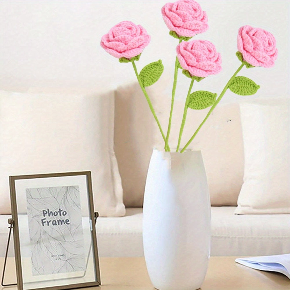 6pcs Crochet Rose Flowers, Crochet Rose Artificial Flowers Knitted Handmade Flowers Home Decoration Anniversary, Finished Handmade Knitted Artificial Flowers Gifts for Women Birthday, Valentine's Day, Mom, Anniversary, Girlfriend, Wife...