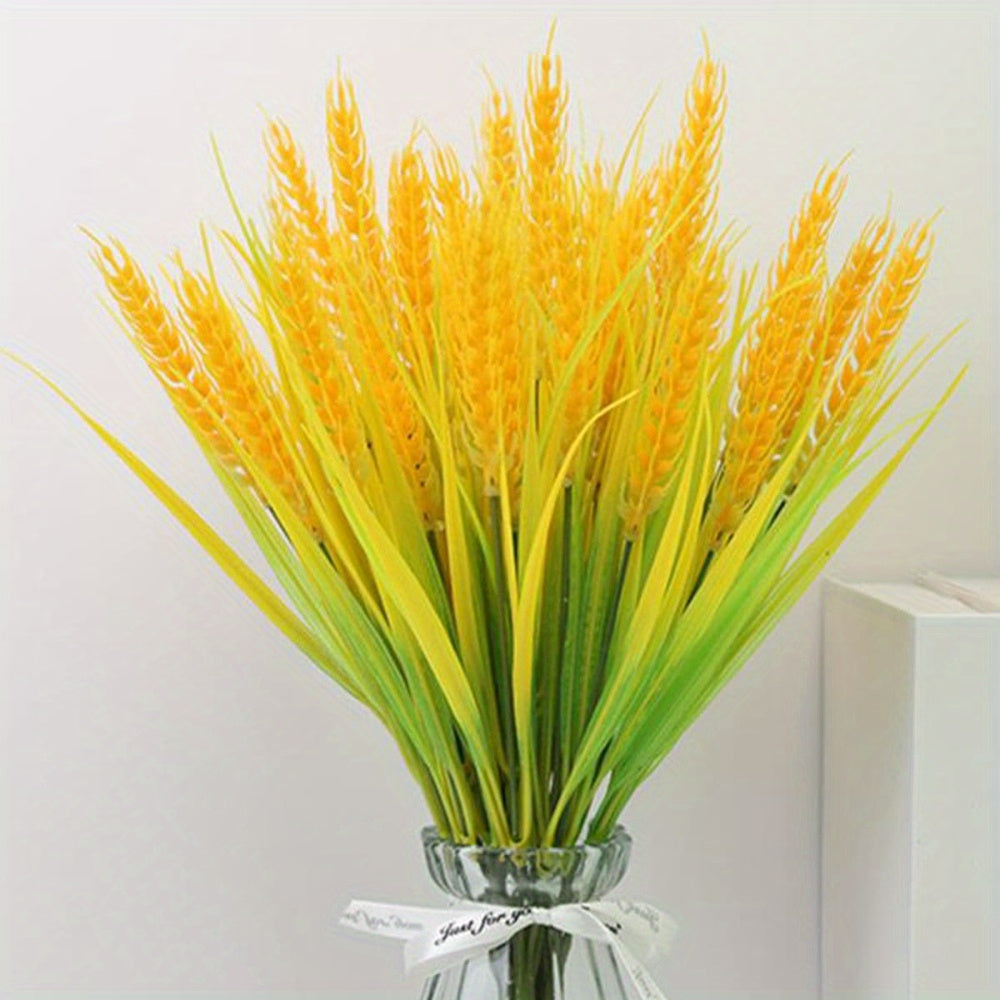 Material: plastic, wire Size: length 42cm/16.5in Color: Yellow Package Includes: 8 Pcs Artificial Plant Wheat Ears