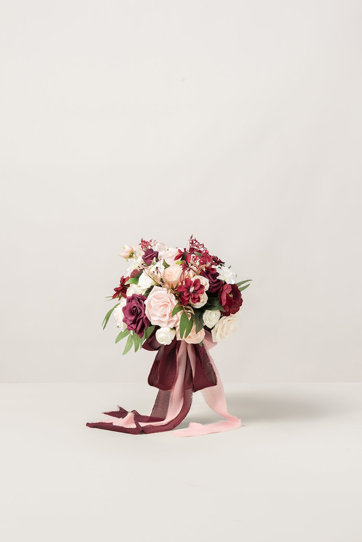 - Package: A bridesmaid bouquet attached with 5ft long marsala and blush chiffon ribbon. Make it easy to choose different numbers of bridesmaid bouquets for your wedding.