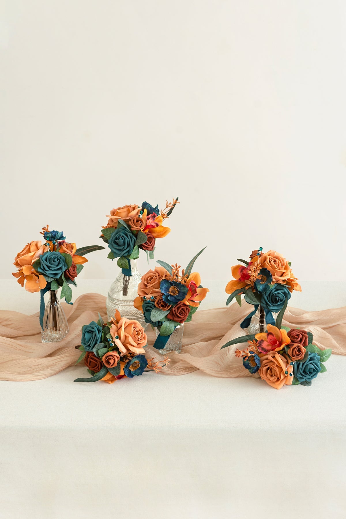 Mini Premade Flower Centerpiece Set in Dark Teal & Burnt Orange