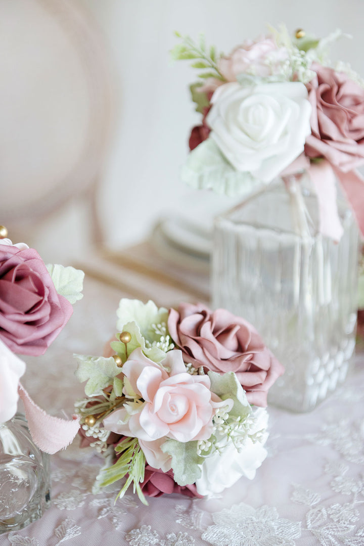 Mini Premade Flower Centerpiece Set in Dusty Rose & Cream