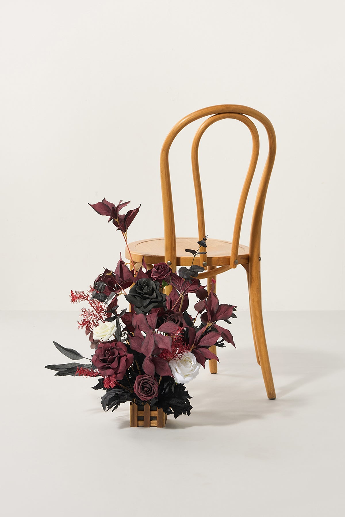 Wedding Aisle Runner Flower Arrangements in Moody Burgundy & Black