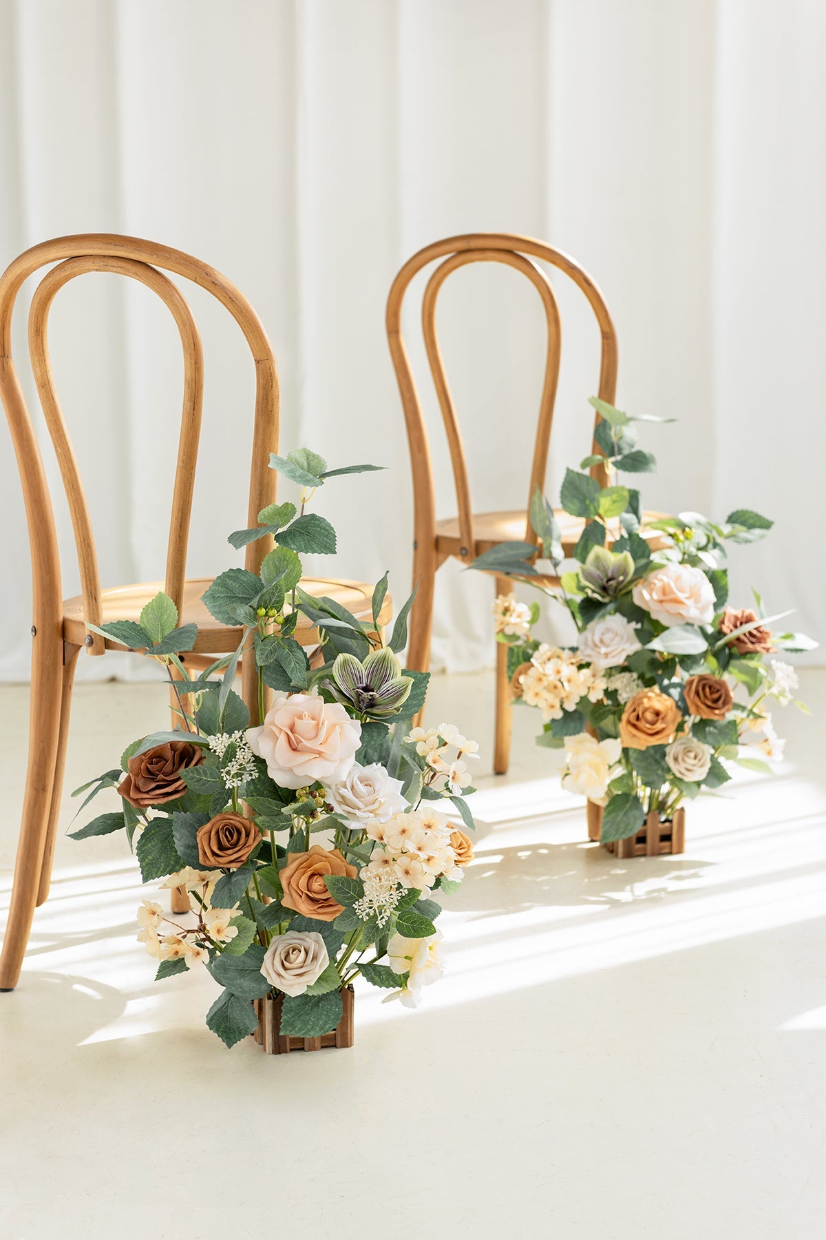Wedding Aisle Runner Flower Arrangements in Sunny Peach & Apricot
